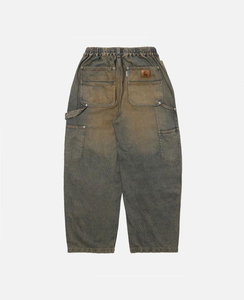 Vintage Dyed Selvedge Denim Double Knee Curved Worker Pants (Beige)