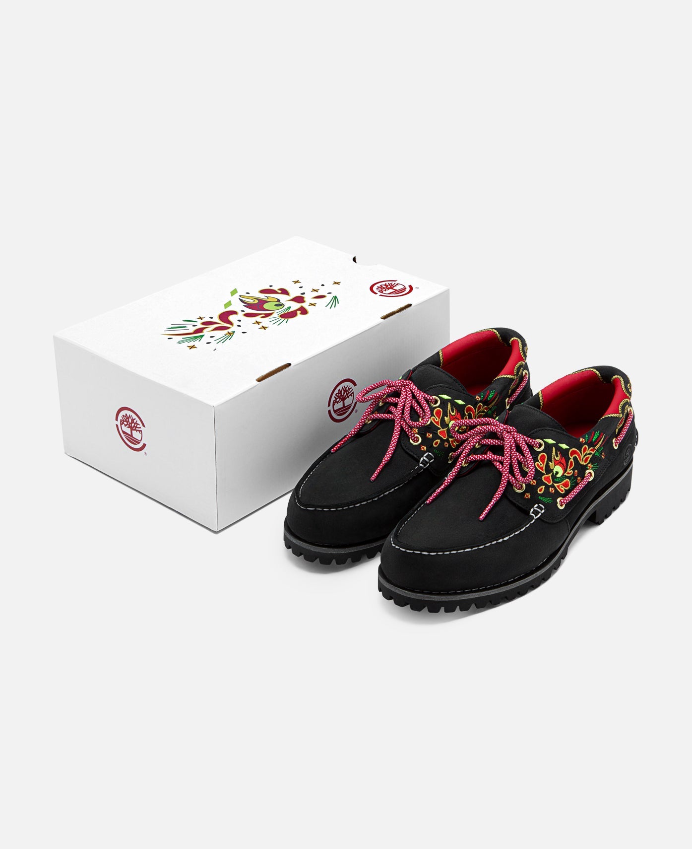 To unite the East and West for a better world, both craftsmanship and sustainability are core to the CLOT x Timberland collection, with everything from the 3-Eye Lugs to the apparel made using natural, eco-friendly materials. CLOT's take on the classic Timberland 3-Eye Lug handsewn boat shoe features a custom uptilted toe upper for a silhouette reminiscing a growling dragon's head, while the handsewn silk embroidery forms its eyes and flames.
